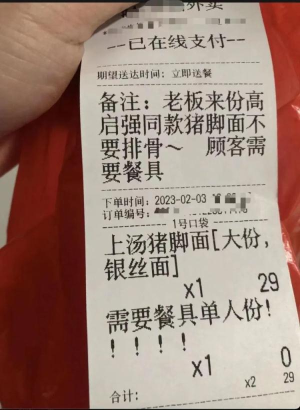 有外卖小哥也表示,最近受电视剧《狂飙》的影响,不少顾客喜欢点猪手面。