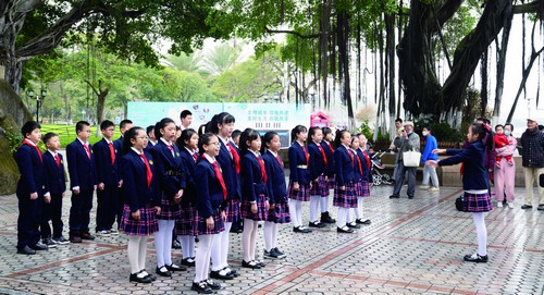 很多歌曲是大家耳熟能详的,如《鼓浪屿之波》《我和我的祖国》《唱支山歌给党听》《国家》,沿路的演出除了学生表演者歌声嘹亮,琴声悠扬,游客、市民也自发参与演唱,成了音乐快闪的参与者之一。有的年轻游客不仅拍照,还当场打开视频直播平台App,现场直播起鼓浪屿的精彩。