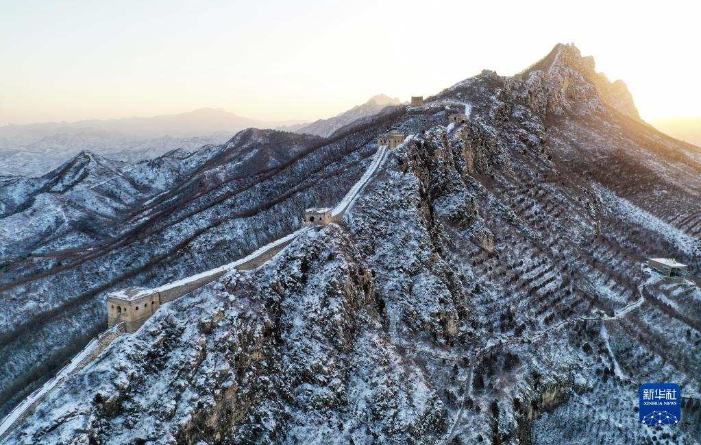 这是2月19日在晨曦中拍摄的雪后司马台长城(无人机照片)。