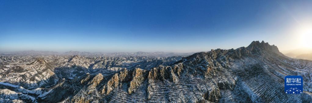 这是2月19日在晨曦中拍摄的雪后司马台长城(无人机全景照片)。