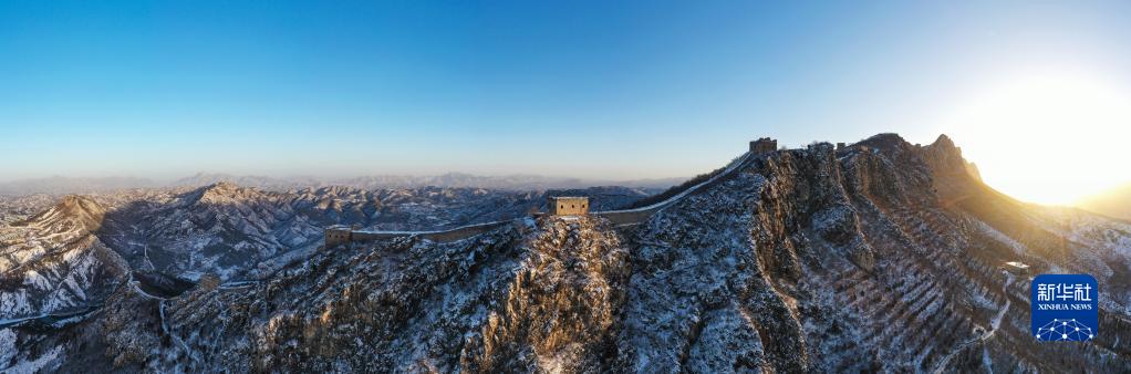这是2月19日在晨曦中拍摄的雪后司马台长城(无人机全景照片)。