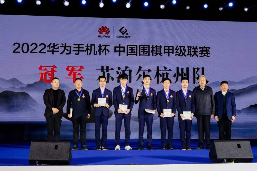 苏泊尔杭州队在2022华为手机杯中国围棋甲级联赛颁奖仪式上。