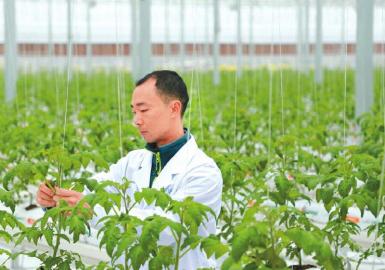 “一个人管理好10亩地,‘科技’和‘智能’是关键。”祝伟强告诉记者,棚体硬件配置了内外遮阳系统、轴流风机通风系统等,同时应用吊蔓栽培、水肥滴灌等技术,形成智能小气候系统,为番茄营造适宜的环境。