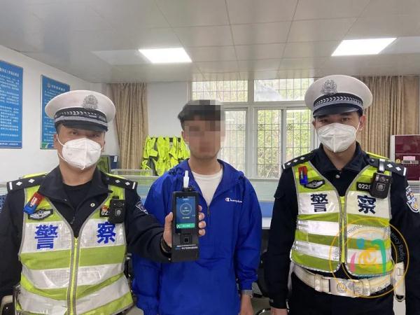 江某朝民警手里的简易酒精测试棒吹了几口气,测试棒立即闪起了警报闪灯,显示其喝了酒。民警立即要求江某下车接受进一步检测,后经呼气式酒精测试仪检测,显示其体内的酒精含量为为63mg/100mL,达到饮酒后驾驶机动车的标准。