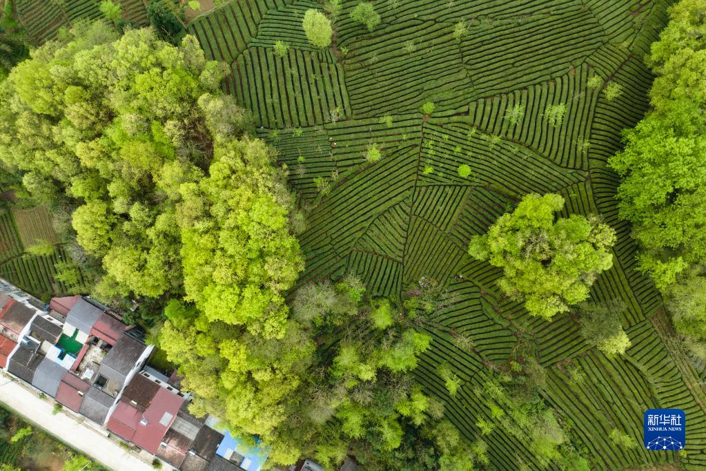 西乡县峡口镇茶园景色(4月4日摄,无人机照片)。