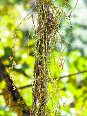 据介绍,墨脱异型兰最早发现于不丹,国内已知分布地区仅有墨脱县。墨脱异型兰花期在4月至5月,其显著特征为花瓣上具红棕色斑块;唇瓣三裂,中裂片非常短,内部具海绵质地囊状附属物,且与侧裂片大小差异明显。