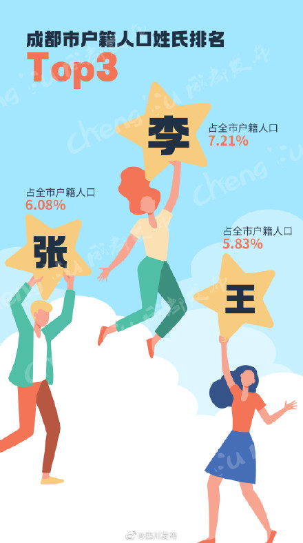 最新!成都“百家姓”排名出炉啦。据2022年年报数据统计来看,成都市户籍人口中排名前十的姓氏已新鲜出炉。 (成都发布)
