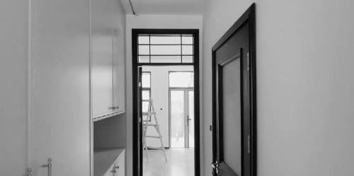 房子内部做了白色的墙配上深色的门窗