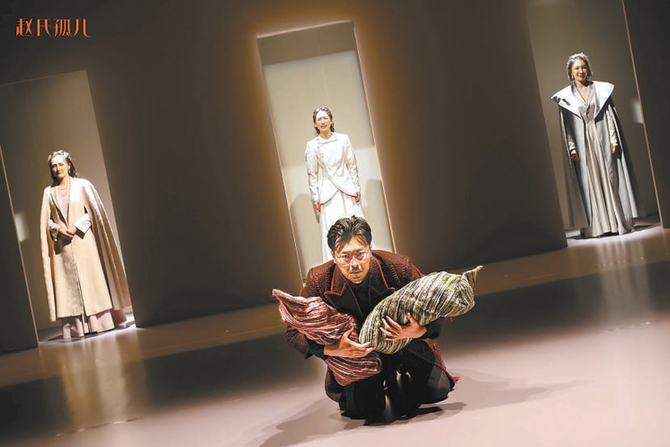 用一个年轻女演员扮演孤儿,减弱了“这一个”孤儿的“赵氏”色彩,弱化了程婴之死与晋灵公引孤儿入宫这一步政治大棋的险恶用意。以孤儿一句“复仇与我何干”的惊世之语作结,恐怕还需更细密的铺垫与可信性。