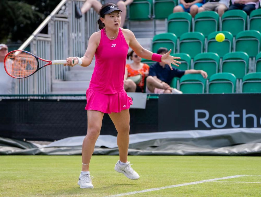 12日,朱琳在诺丁汉网球公开赛中。图片来自WTA官方社交账号