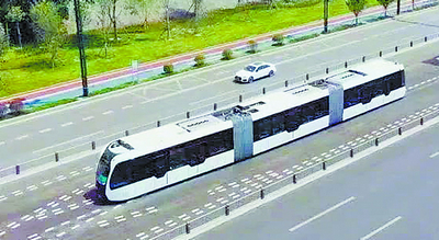 宜宾智轨快运系统T4线正线载客试运行。