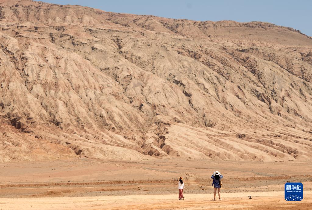 游客在位于吐鲁番市的火焰山景区游览(6月27日摄)。
