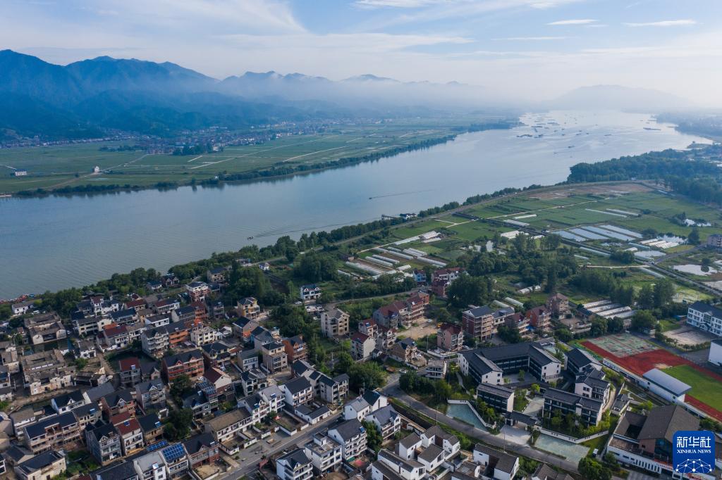 7月3日,空中俯瞰富春江畔的东梓关村(无人机照片)。
