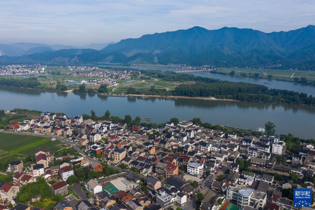 7月3日,空中俯瞰富春江畔的东梓关村(无人机照片)。