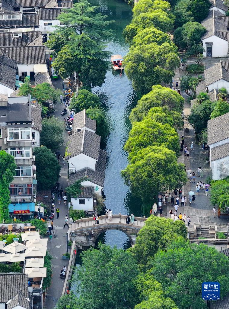 游客在苏州平江历史街区休闲游玩(7月3日摄,无人机照片)。