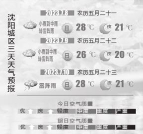 7月9日—12日,受东北冷涡持续影响,沈城多阵雨或雷阵雨天气,局部雨量偏大,提醒大家外出时带好雨具,做好防雨、防雷准备。降雨期间,道路湿滑,且能见度还可能较差,建议市民提前做好出行安排,注意雨天行车安全。近期沈城天气变化频繁,请大家及时关注最新的气象信息,合理安排生活及出行。沈阳晚报、沈报全媒体主任记者 吕佳