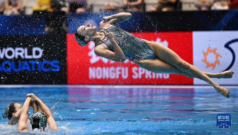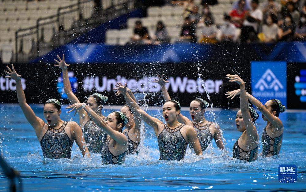 7月21日,中国队在比赛中。当日,在日本福冈举行2023年世界游泳锦标赛花样游泳集体自由自选决赛中,中国队以329.1687分的成绩获得冠军。新华社记者夏一方 摄