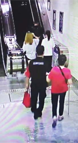 由于地铁行程约40分钟,万女士乘车前想去卫生间,杨林喊来女安检员任芳艳陪她前往。万女士背着一个包,手上还拎了一个袋子,任芳艳协助她过了安检口。随后,杨林带她坐手扶电梯到站台等车。
