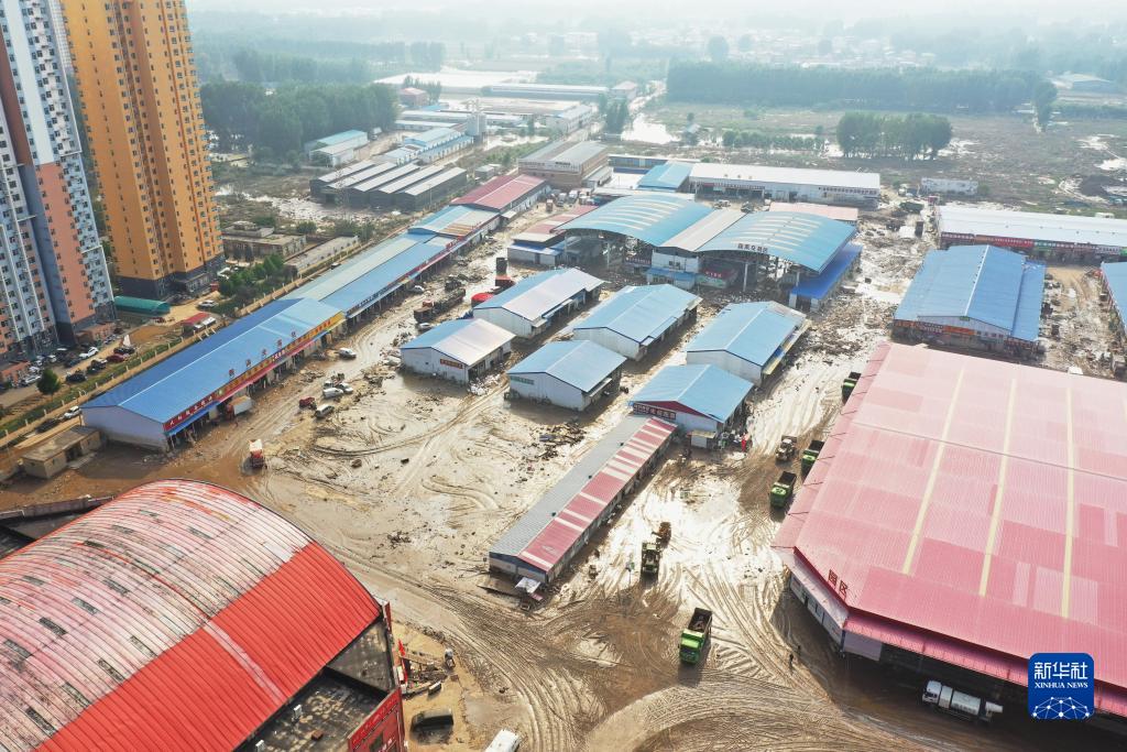 这是洪水退去后的涿州新发地大石桥农副产品批发市场(8月9日摄,无人机照片)。