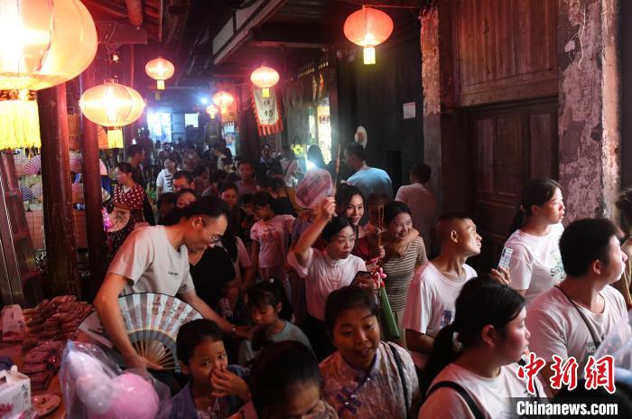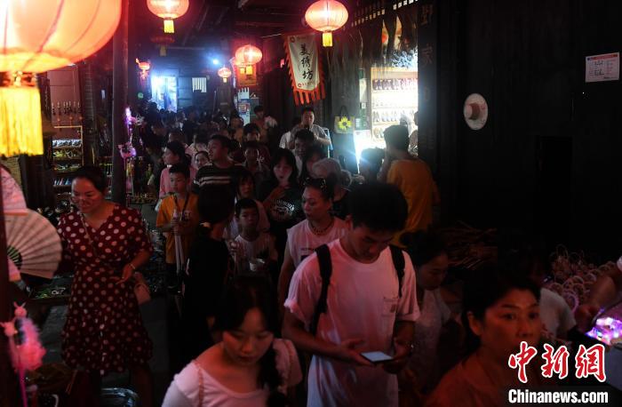 图为民众夜游荣昌万灵古镇。中新网记者 周毅 摄