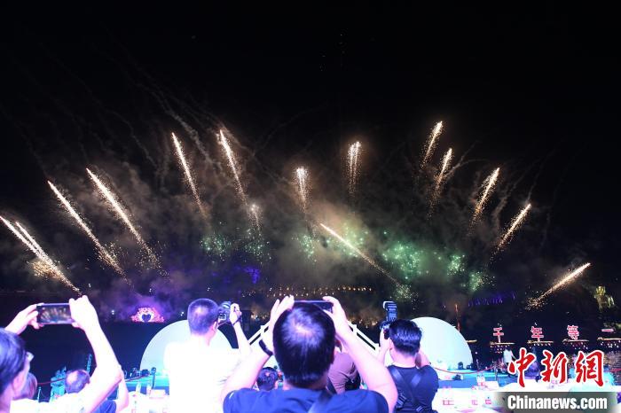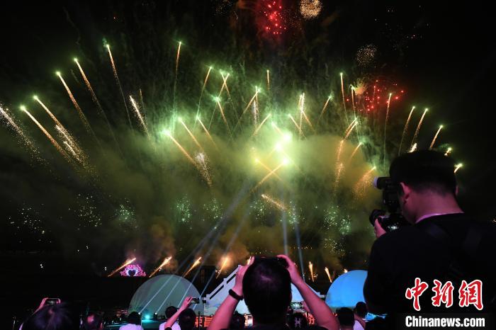 图为开幕式上,民众欣赏璀璨烟花秀。中新网记者 周毅 摄