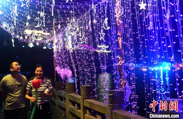 图为民众在彩灯打造的梦幻隧道中行走。中新网记者 周毅摄