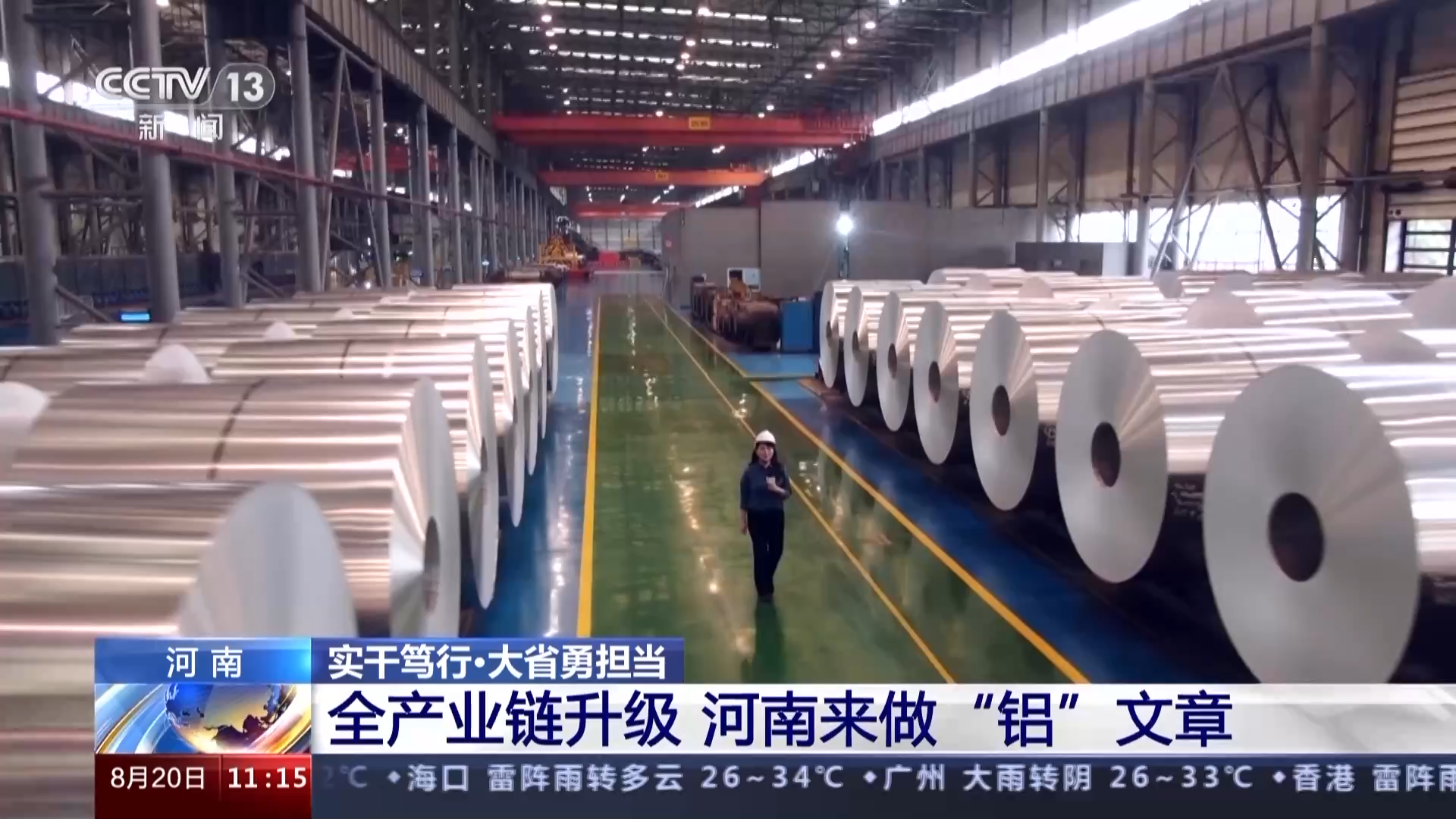 巩义这家国内主要的高端铝合金材料供应商之一,年产能可以达到60多万吨。这个8月,共有四万多吨的铝深加工产品会从这里出发,走向全球市场。铝的应用场景非常广泛,小到生活中常见的易拉罐、铝餐盒、药用箔,大到新能源汽车、轮船,甚至航空航天等领域,都有它的身影。