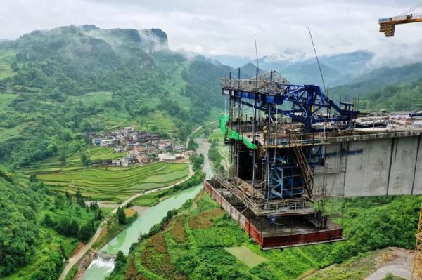 已经合龙的贵南高铁澄江双线特大桥上跨兰海高速