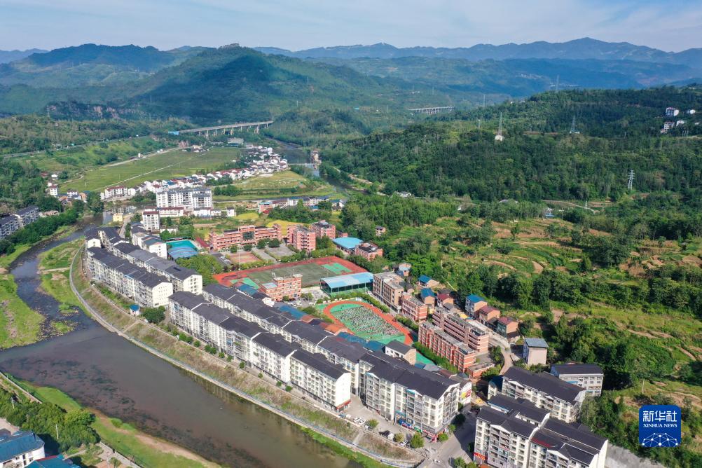 这是9月1日拍摄的位于重庆市石柱县三河镇的三河小学(无人机照片)。