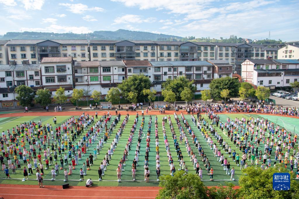 这是9月1日在重庆市石柱县三河镇拍摄的的三河小学开学典礼。