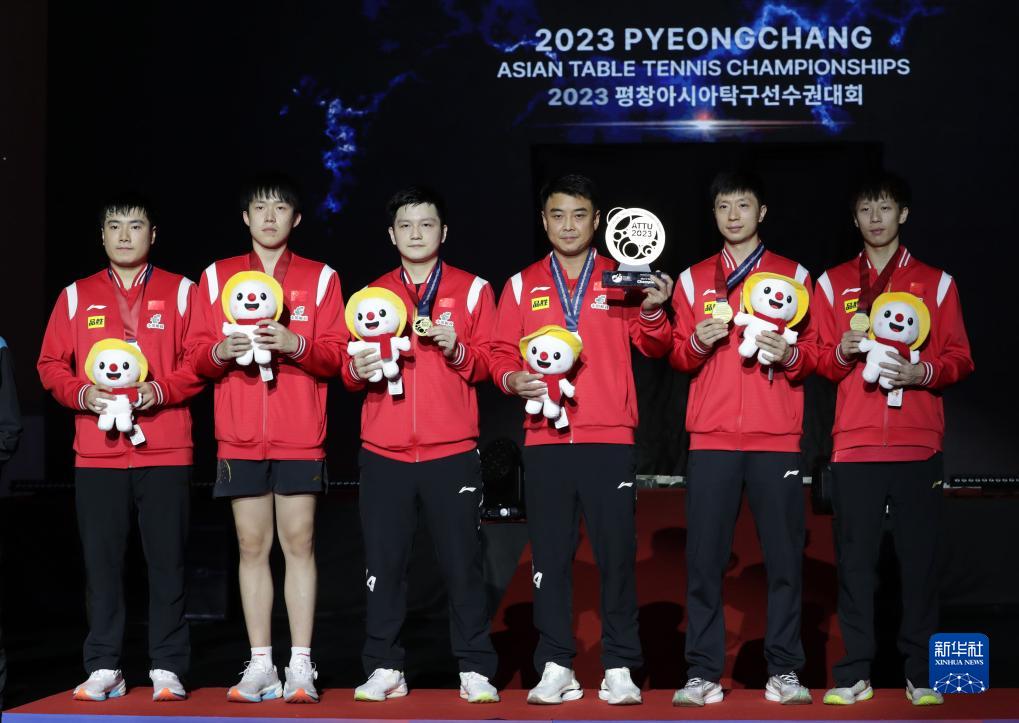 新华社韩国平昌9月6日电(记者陆睿、孙一然)2023年乒乓球亚锦赛男子团体决赛6日在韩国平昌进行,中国队以3:0击败中国台北队,夺得冠军。
