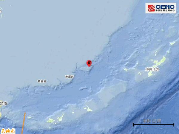 震中距台湾基隆市389公里,距台北市411公里。震中5公里范围内平均海拔约-317米。