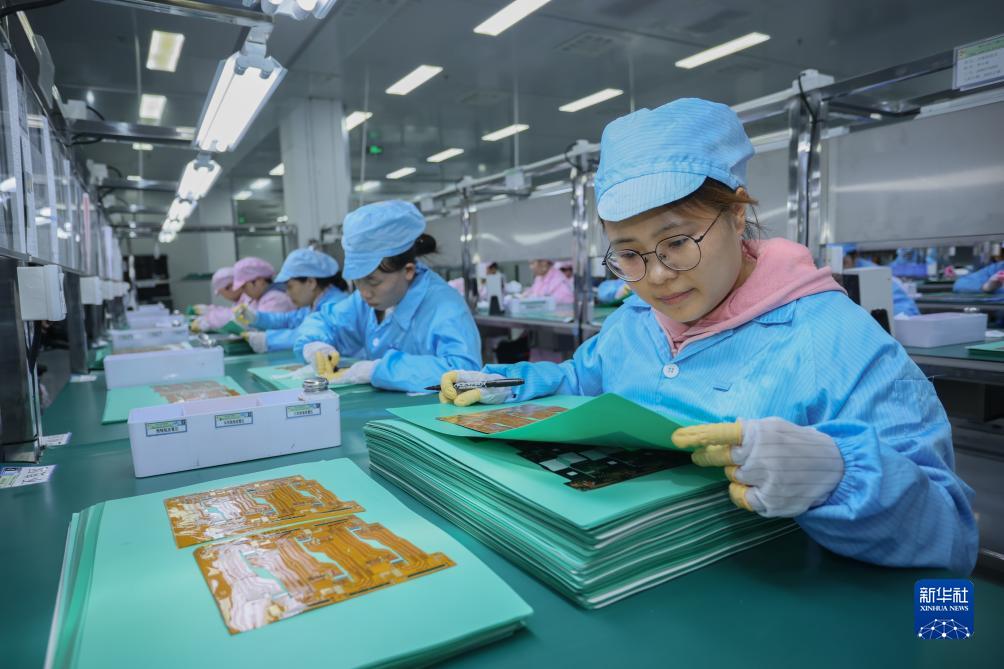 10月7日,工人在四川省遂宁市高新区一家电子企业的生产线上作业。