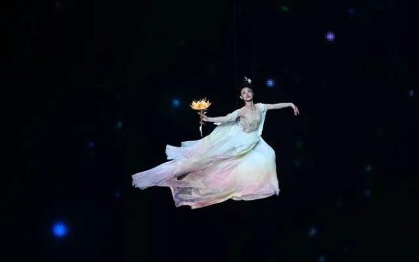 小女孩手持一朵“记忆之花”,与观众一起把关于亚运、杭州的美好记忆一点一滴收集起来。“记忆之花”集聚的美好记忆在延续,19朵巨大的桂花不断上升,将芬芳带向远方。
