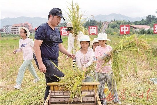 割稻、脱谷粒、绘制草帽……秋收季节,大洋乡广袤乡村里稻田成熟,迎来一批又一批学生,前来体验农耕文化,参加割稻谷、踩打谷机、制作谷物标本等一系列活动,感受劳作的艰辛和收获的喜悦。