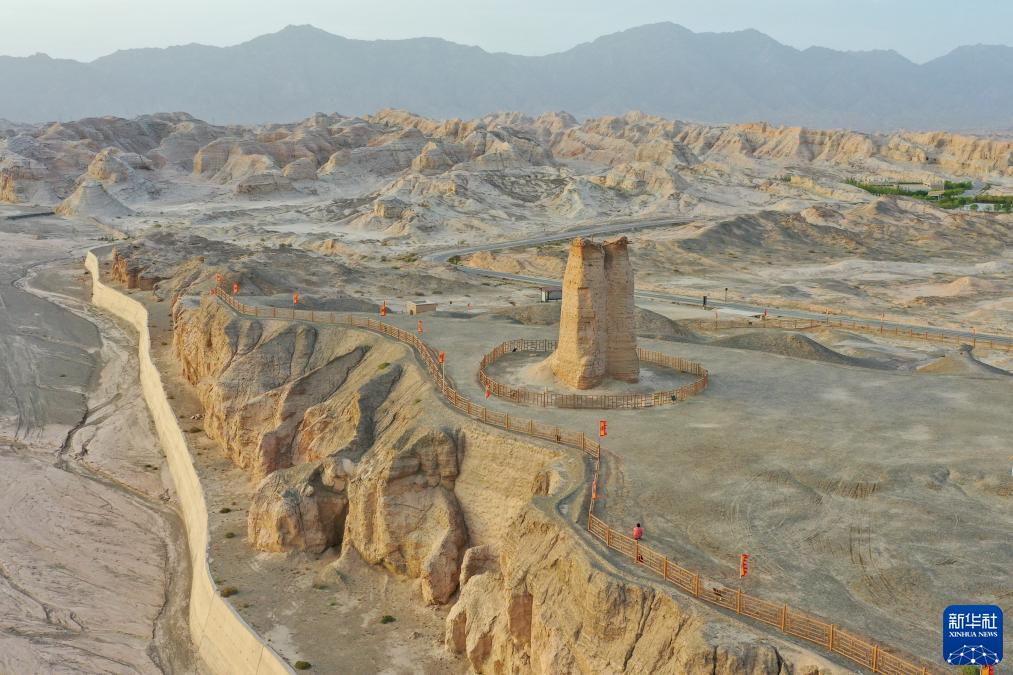 这是9月8日在新疆库车市拍摄的克孜尔尕哈烽燧(无人机照片)。