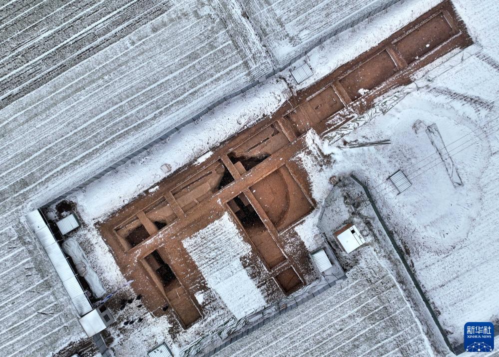 这是河南汉魏洛阳城宫城遗址的宫城东墙发掘区全景(1月14日摄,无人机照片)。