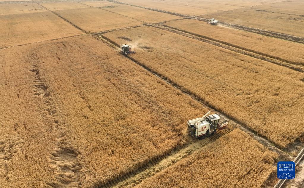 金秋时节,辽宁省阜新市彰武县大冷镇上三家子村的稻田里机声隆隆,一片丰收的繁忙景象。