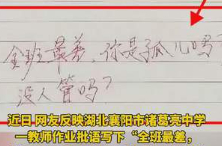 近日,有网友发文称,湖北襄阳市诸葛亮中学(原襄阳市三十二中学)七年级一位老师在批改作业时,给学生写下评语“全班最差,你是孤儿吗?没人管吗?”对此,襄阳市诸葛亮中学办公室工作人员回应,该校将会调查此事,如有这种情况,将会约谈这名老师,这样的表达方式确实存在问题。