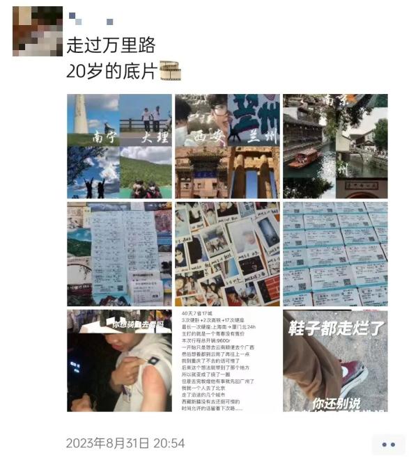 无独有偶,刚刚开启大学生活的蔡同学在各视频平台上分享了自己的“特种兵式”高中毕业旅行,热度颇高;他从广东出发,历经云南、四川、重庆、甘肃后去了北京,随后南下游玩了江浙沪,最后从福建返回广东,从7月中旬出发到9月1日回家,旅程长达40天,共游玩了7省17城,花费9600元。