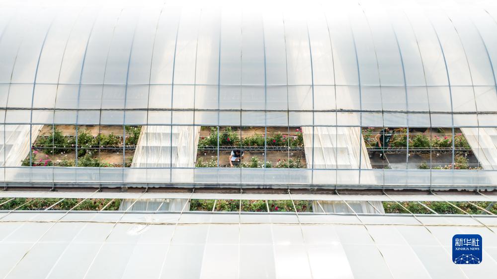 云南省安宁市现代农业园区玫瑰种植示范园一景(无人机照片,10月20日摄)。
