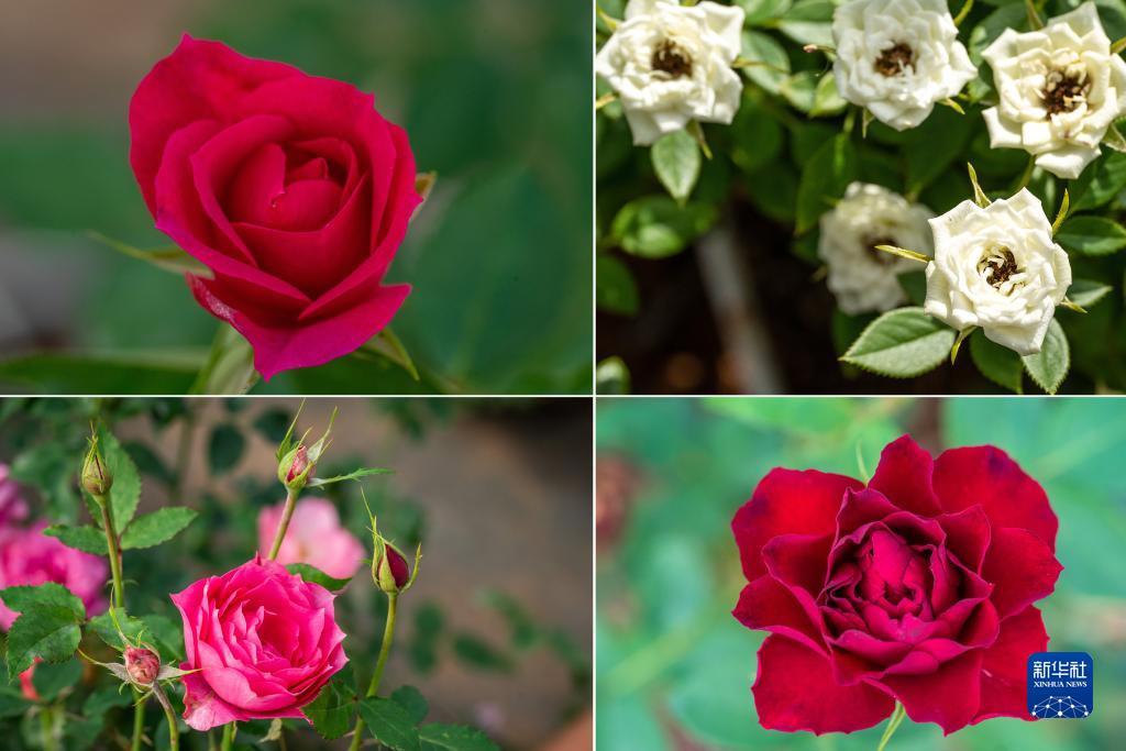 这是云南省安宁市现代农业园区玫瑰种植示范园里玫瑰新品种的拼版照片。
