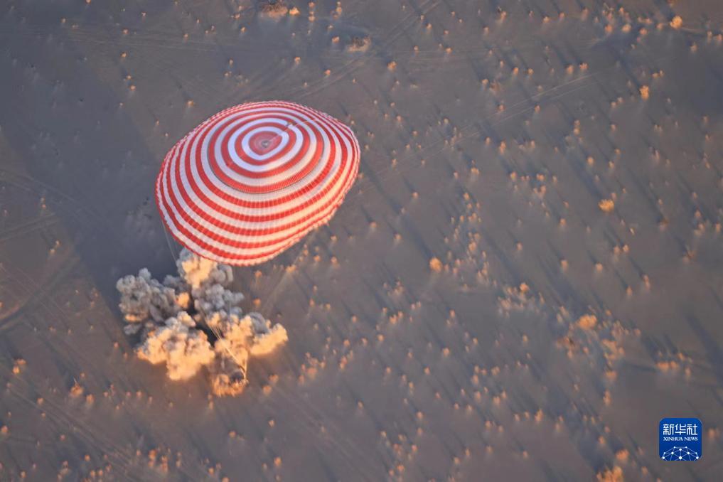 10月31日,神舟十六号载人飞船返回舱在东风着陆场成功着陆。