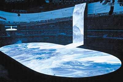 2022年北京冬奥会开幕式将高科技与高水平艺术相结合,营造出一个个绝美瞬间。如“黄河之水天上来”场景,工作人员通过人工智能渲染出总导演张艺谋要求的既像奔腾的黄河水又像中国山水画的效果,最终北京冬奥会开幕式大屏及影视技术系统被中国电影博物馆收藏。