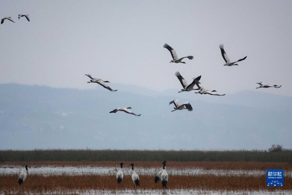 入冬以来,贵州省威宁彝族回族苗族自治县草海国家级自然保护区陆续迎来越冬黑颈鹤。据草海国家级自然保护区管理委员会最新监测数据显示,截至11月18日,越冬黑颈鹤数量已超1500只。