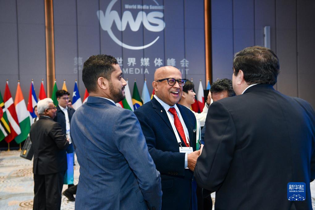 12月3日,参会代表在第五届世界媒体峰会开幕式现场交流。