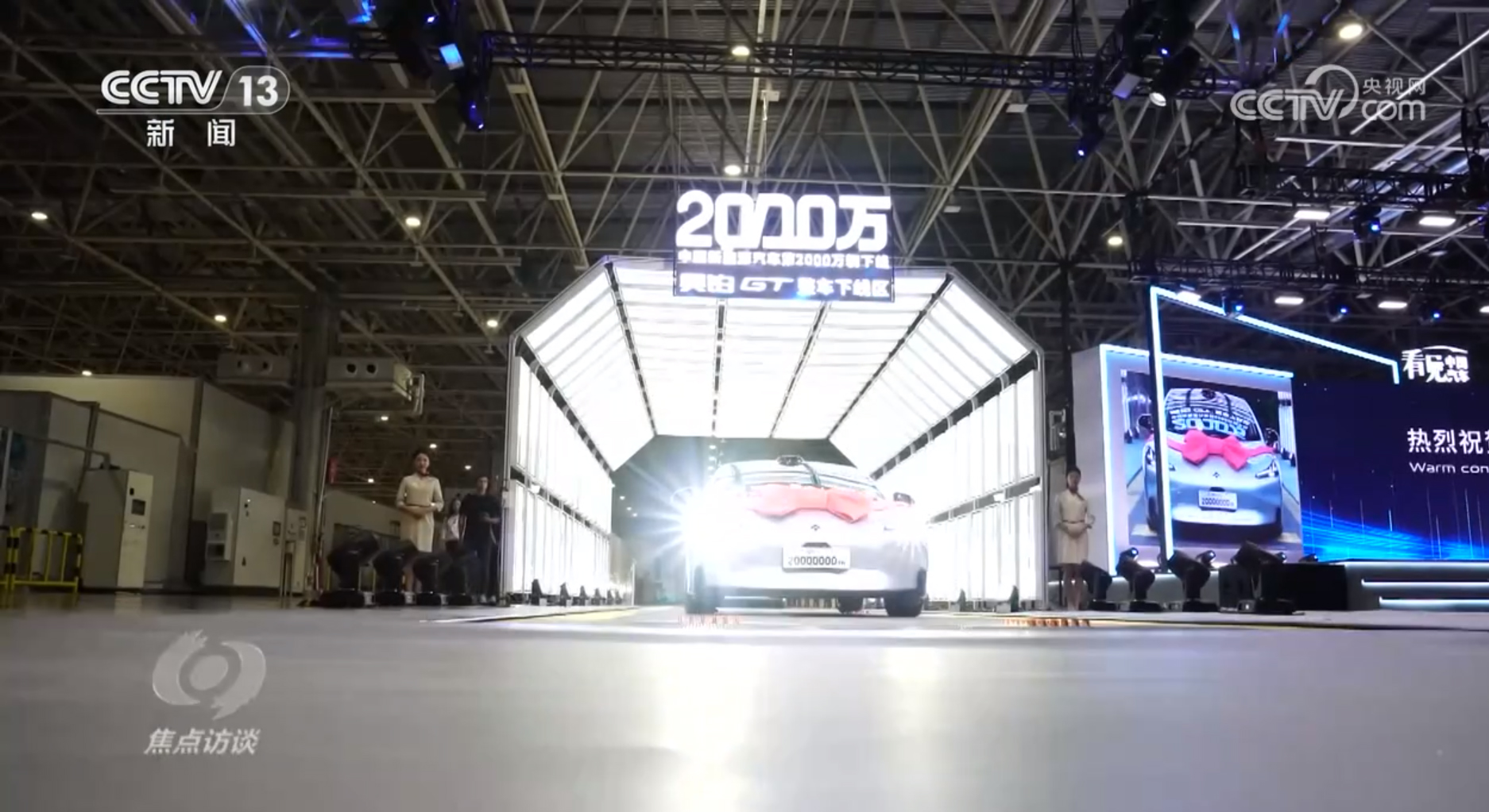 这是今年7月,我国第2000万辆新能源汽车在广州下线时的仪式现场。