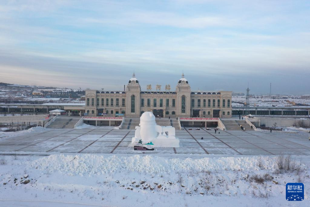 这是12月20日拍摄的漠河火车站(无人机照片)。