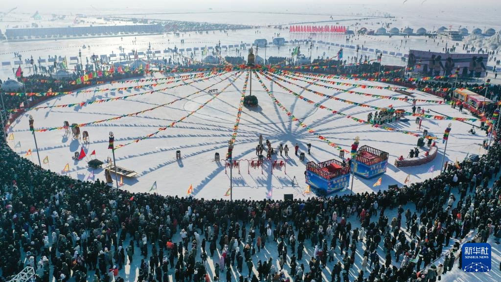 当日,查干湖第22届冰雪渔猎文化旅游节在吉林松原查干湖冰面上启幕。活动现场,来自全国各地的游客相聚观赏冬捕盛况,感受冰湖腾鱼的丰收喜悦。
