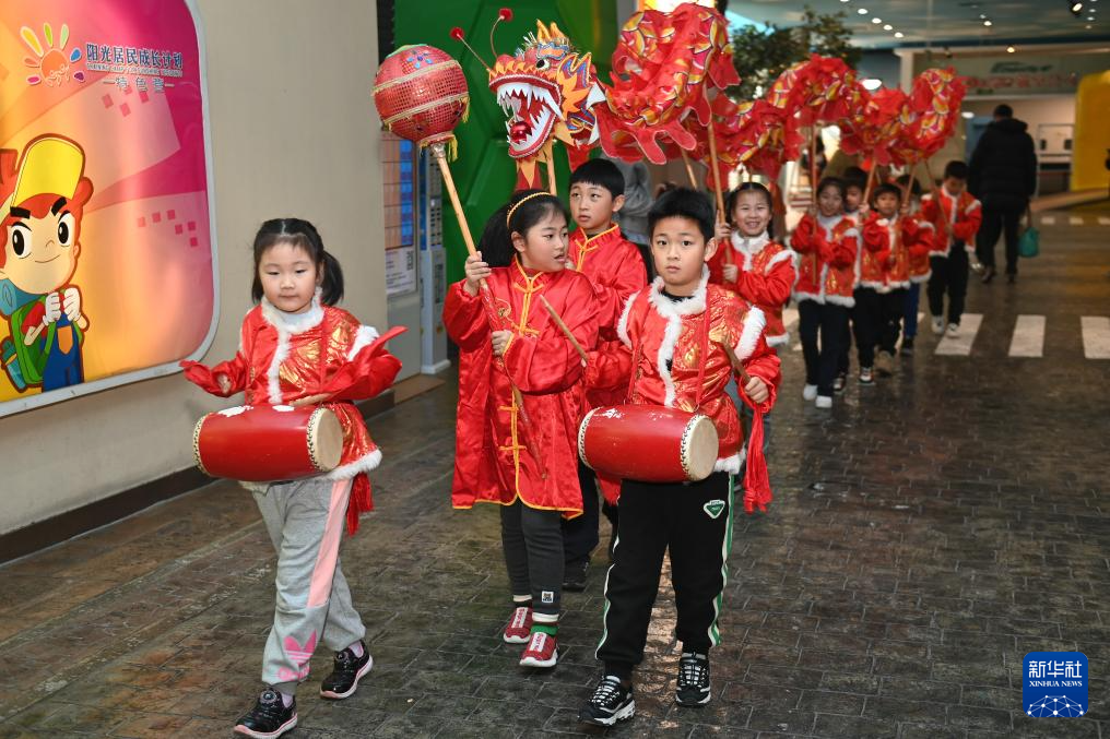 12月30日,小朋友在杭州青少年活动中心参加舞龙巡游。
